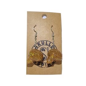 These unique gold glitter skull earrings are made with premium two-part epoxy resin and exclusive handcrafting methods, ensuring each pair is a breathtaking piece that will surely impress.